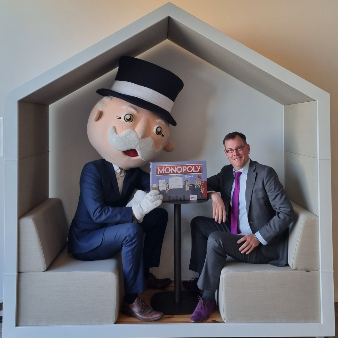 MONOPOLY @WORK est le moyen idéal de (re)vivre des situations de travail reconnaissables de manière ludique. Visitez Events, achetez le département Recrutement ou rénovez le Helpdesk. Même le bureau du directeur financier peut être acheté !